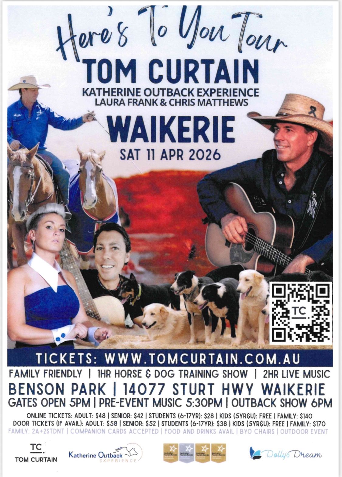 Multiple Golden Guitar winner and horseman extraordinaire Tom Curtain is back on the road with his award‑winning Katherine Outback Experience as part of his Here’s To You Tour!